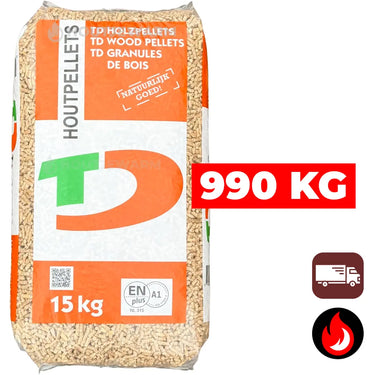 De pellets zijn verpakt in 66 zakken van 15 kg (990 kg totaal) en hebben een diameter van 6 mm, geschikt voor vrijwel alle pelletkachels.